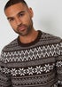 Threadbare Chocolate Fairisle Crew Neck Christmas Jumper