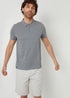 Threadbare Dark Grey Dion Geometric Print Zip Collar Jersey Polo Shirt
