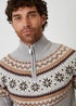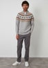 Threadbare Grey Fairisle Cable Knit Quarter Zip Jumper