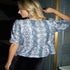 Turn heads at your next party with this printed sequin tie-front blouse from Threadbare. Made from a stretch fabric embellished with sequins and fully lined for comfort, this smock-style blouse features a tie front with three bows and a round neck. The short puff sleeves have elasticated cuffs to add volume, while the elasticated waist and gathered peplum create a flattering silhouette. Style with the matching trousers for a full sequin co-ord, or pair with a black midi skirt and a black pump. Model wears UK size 8.