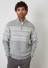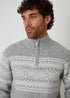 Threadbare Grey Textured Knitted Fairisle Quarter Zip Jumper