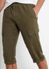 Threadbare Khaki Linen Blend 3/4 Length Cargo Trousers