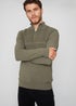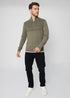 Threadbare Khaki Rib Detail Crew Neck Knitted Quarter Zip Jumper