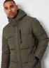 Threadbare Khaki Showerproof Hooded Longline Puffer Jacket