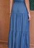 Threadbare Light Blue Seed Tiered Chambray Midi Skirt