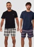 Lounge in comfort with this two pack of shortie pyjama sets from Threadbare. This two pack includes one textured and one plain cotton blend short sleeve t-shirt, both featuring chest embroidery and ribbed crew necks. The brushed cotton check shorts have an elasticated waistband, drawcords and side entry pockets for comfort.