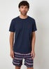 Threadbare Navy 2-Pack Textured Check Shortie Pyjama Sets