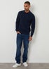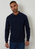 Threadbare Navy Cable Knit Long Sleeve Polo Jumper