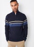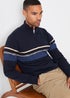 Threadbare Navy Colourblock Quarter Zip Knitted Jumper