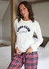Ideal for cosy nights, this loungewear set from Threadbare blends comfort with a touch of sparkle. The set includes a long sleeve cotton crew neck top with "Cosy Club" embroidered across the chest, and loose open-cuff bottoms in a check print with metallic thread and an elasticated waistband with drawcords. Pair with your favourite soft-touch dressing gown and slippers for an outfit perfect for a night in. Model wears UK size 8.