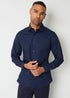 Threadbare Navy Cotton Long Sleeve Shirt With Stretch