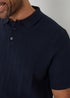 Threadbare Navy Cotton Mix Short Sleeve Textured Knitted Polo Shirt