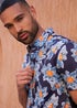 Threadbare Navy Cotton Tropical Print Short Sleeve Shirt