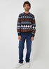 Threadbare Navy Fairisle Knitted Crew Neck Christmas Jumper