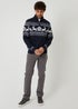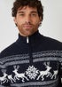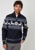 Threadbare Navy Fairisle Knitted Quarter Zip Christmas Jumper