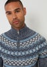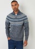 Threadbare Navy Fairisle Knitted Quarter Zip Jumper