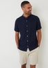 Threadbare Navy Grandad Collar Linen Blend Short Sleeve Shirt