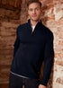 Threadbare Navy Mock T-Shirt Quarter Zip Sweatshirt