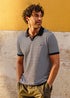 Threadbare Navy Open Collar Striped Pique Polo Shirt