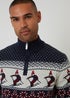 Threadbare Navy Ski Fairisle Cable Knit Quarter Zip Jumper