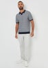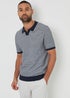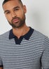 Threadbare Navy Textured Stripe Trophy Neck Knitted Polo Shirt