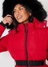 Learn moreStay warm and stylish on the slopes with this ski jacket, designed for ultimate comfort and performance. This ski coat features horizontal padding and a microfleece-lined body and hood, offering cosy insulation. The full zip with storm guard and a chin guard has snap fastening ensuring added protection, while the stretchy waist belt with a metal buckle enhances the fit. A 3-piece hood with detachable faux fur trim and ribbed storm cuffs will keep out the cold. With two outer zip pockets, a zip arm pocket, an inner welt pocket, and an inner snow skirt with an elasticated hem band, this coat is perfect for all your skiing needs. Model wears UK size 8.