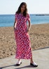 Update your casual summer wardrobe with this all-over print maxi dress. With a round neck and short sleeves, along with a split-up hem on each side, this jersey dress also features two handy concealed side pockets making this dress a functional, versatile piece to update your collection. Made from 100% cotton, this dress is perfect in warmer weather. Model wears UK size 8.
