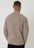 Threadbare Taupe Cotton Blend Rib Panel Quarter Zip Knitted Jumper
