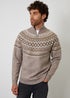 • Threadbare Taupe Fairisle Quarter Zip Knitted Jumper With Wool