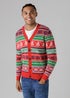 Tokyo Laundry Red Festive Jacquard V-Neck Cardigan