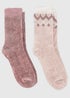 Totes Toasties Pink Ladies Fair Isle & Chenille Supersoft Bed Socks (Twin Pack)