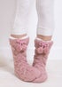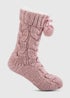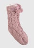 Learn moreThe dusky pink shade of these lovely chunky cable knit totes toasties slipper socks ensures a perfect pairing with your cosy indoor winter wardrobe. The pompom tie detailing is a fun touch, and the sherpa lining guarantees warm feet for winter. Our slip-resistant tread is a given, of course! Contains recycled fabric. One size fits most.