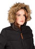 Longer in length to provide good coverage, this padded Audrey jacket from Trespass features a grown-on hood, styled with a fur trim for an added dash of snug. Fashioned with waterproof and windproof properties for extra peace of mind, it's completed with a two-way front zipper, 2 zipped pockets and leather-look tabs to the zips. Ideal for winter use.