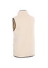 A perfect blend of style, comfort, and warmth, this gilet is crafted with a plush fleece fabric in an elegant cream hue that promises to keep you cosy without compromising on style. The contrasting dark trim adds a touch of sophistication while the full-length zipper ensures easy wearability. Two zippered pockets adorned with brown pulls not only elevate the aesthetic but offer convenient storage for your essentials. The stand-up collar provides additional warmth, making this gilet a versatile addition to your wardrobe for those chilly days where extra insulation is a must.