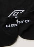 Stock up on your top drawer essentials with this handy 5 pack by Umbro. Styled in black for added practicality, these socks feature a classic trainer design for extra comfort and include signature Umbro logo’s to complete the look.