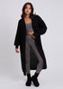 Model is 5'6 and wears a size S. Longline. Front Pockets. The Chunky Longline Cardigan is a cosy and stylish knitwear piece that offers both comfort and elegance. This cardigan is perfect for layering during colder months. The longline design extends past the hips, providing extra coverage and a relaxed silhouette. With an open front and a loose, oversized fit, this cardigan is ideal for casual wear, adding a touch of warmth and sophistication to any look.