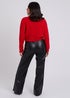 Model is 5'6 and wears a size 8. PU. Wide Leg. Fasten Front. Elevate your wardrobe with these stylish and modern Wide Leg PU Trousers. Crafted from high-quality polyurethane (PU) fabric, these trousers offer a sleek, faux-leather look that's both chic and versatile. The wide-leg silhouette creates a flattering, relaxed fit that adds a touch of contemporary edge to any outfit. Whether you're dressing up for a night out or styling a casual look, these trousers are the perfect statement piece. Featuring a comfortable waistband and subtle detailing, they pair effortlessly with both your favorite tops and jackets.
