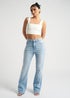 Model is 5'6 and wears a size 8.High waist. Button and zip fastening. Relaxed fit. Flared. Stand out with our Denim Bootcut Jeans this summer! A classic 5 pocket design silhouette with a denim colour that goes with everything. The relaxed fit ensures comfort while the flared style adds a touch of retro flair. Perfect for any casual occasion