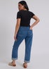 These jeans feature a high waist, wide, full-length leg and a classic 5-pocket denim silhouette.