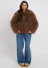 Make a statement with this Mongolian faux fur jacket, designed with a voluminous, textured finish that exudes glamour.