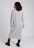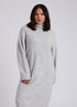 Model is 5'6 and wears a size S. Roll neckline. Long sleeves. Midi length. Loose fit. The perfect Autumn knit midi dress featuring a flawless regular silhouette with a roll neck pattern and long sleeve detail. The ideal dress for a snowy day out with friends to a Christmas holiday centrepiece, this dress will quickly become your winter essential.