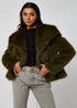 Experience luxurious warmth and style with the Khaki Faux Fur Jacket. Crafted from soft, plush faux fur, this jacket offers a cosy feel while making a chic fashion statement.
