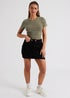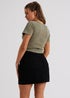 Model is 5'6 and wears a size 8. Regular fit. Crew Neck. Our new Washed Ribbed Tee, is a perfect staple for your wardrobe! Crafted with comfort in mind, this t-shirt is designed to be one of your go-to pieces for effortless style and everyday wear.Whether you're lounging at home, running errands, or meeting friends for coffee, this versatile t-shirt has you covered.