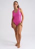 Model is 5'6 and wears a size 8.Low back.Wave texture.Fully lined Shop our new in Pink Wave textured Swimsuit to stand out this summer. This swimsuit features a vibrant pink finish with a scooped neckline and a scooped back. Featuring thick secure shoulder straps.Your poolside must have for your upcoming Summer holidays.