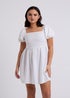 Urban Bliss White Linen Blend Lace Up Mini Smock Dress