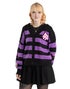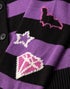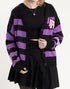 Introducing the Monster High Alumni Women's Black and Purple Striped Cardigan, designed for casual everyday wear. This long sleeve cardigan features a stylish V-neck design and a secure button closure. Made from 100% acrylic, it ensures durability and comfort for regular use. The bold black and purple striped pattern prominently showcases the iconic Monster High brand, making it a standout piece for any fan of the series. The regular fit provides a relaxed silhouette that works well over various outfits, from T-shirts to dresses. Ideal for layering during cooler days, this cardigan can be easily paired with jeans, leggings, or skirts for a versatile look. Whether you're heading to school, meeting friends, or enjoying a day out, this piece adds a fun touch to your wardrobe. It's perfect for both casual outings and lounging at home, offering a playful element to your everyday attire. Plus, with its vibrant colours and cartoon theme, this cardigan is a great way to express your unique style. Available now, the Monster High Alumni Womens Black and Purple Striped Cardigan is a practical addition to any wardrobe. Perfect for occasions like Halloween, themed parties, or just everyday wear, it is sure to appeal to fans of all ages. Don't miss this opportunity to add a touch of Monster High merchandise to your collection.