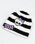 Stay warm this winter with the Monster High Women's Black & Purple Striped Beanie Hat. Made from 100% acrylic, this beanie provides a comfortable fit, keeping your head warm during chilly days. Its striking black and purple striped design features the 'MH' logo prominently displayed, reflecting the iconic Monster High brand. Designed for women, this everyday accessory is versatile for various uses. Whether headed to school, out with friends, or lounging at home, this beanie adds a stylish touch to any outfit. Its regular fit ensures it fits most head sizes comfortably. The pull-on style makes it easy to wear and take off whenever needed. Perfect for chilly weather, the Monster High beanie serves as an excellent choice for daily wear or weekend outings. Pair it with your favourite winter coat or casual attire for added flair. Ideal for fans of the popular cartoon-themed franchise, it makes a great addition to your Monster High merchandise collection. This beanie is not just practical; it's a statement piece for any Monster High enthusiast. Its design makes it suitable for various occasions, including dress-up events, themed parties, or just enjoying time with friends. The unique colour combination of black, white, and purple ensures it stands out while keeping you warm. Great as a gift during the colder months or for special events like birthdays, the Monster High beanie will appeal to fans of all ages. Get ready for winter adventures with this character-themed accessory that blends functionality with fun.