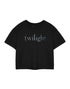 Dive into the world of Twilight with our Twilight Logo Crop Women's Black Short Sleeve Graphic Tee!