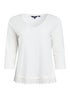 The Delis Lace Hem Top is a really pretty block colour T-Shirt, with a V-neck, 3/4 length sleeves and of course, an intricate lace hem detail. This smart tee teams beautifully with our printed skirts or block colour bottoms.