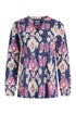 The Brooke,printed jersey top has all the comfort of a T-Shirt with the styling of a blouse. It has a slub texture for a casual feel, but the notched neck and bloused sleeves give this comfy top a smart edge. It looks great styled with our Malorri cargo trousers, or a great pair of jeans.